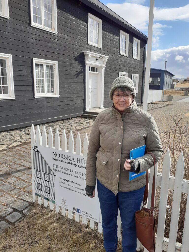 The author outside Norwegian House, Stykkisholmur