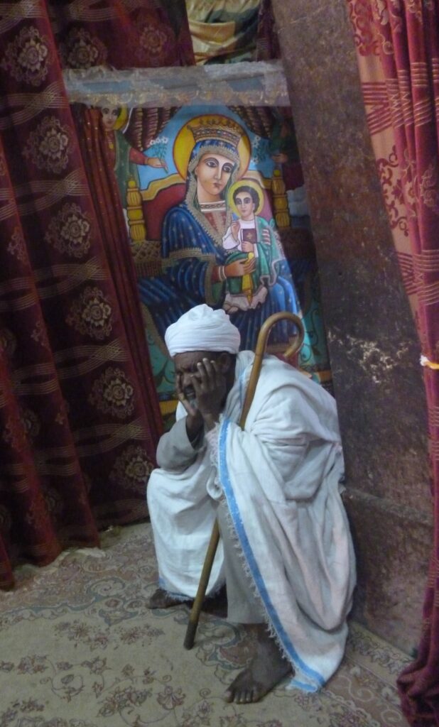 The pilgrims come from near and far to honour the birth of Lalibela, or Jesus Christ. ‘It is the same thing’, according to Happy. His father and grandfather (who was 101 when he died) were priests in the church and Happy attends services every day, before dawn. The city is proud that 100% of its people are believers in the Ethiopian Orthodox Church. The church is committed to feeding the poor, but there is evidence in the streets that this is not enough.
