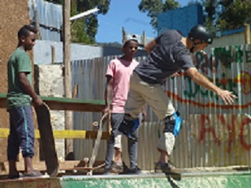 Young people are the same the world over, keen to be active, competent in sport, mentored by older people. Our son has always been a mad keen skateboarder. In the picture below he shows the local lads how it’s done. They were fast learners!